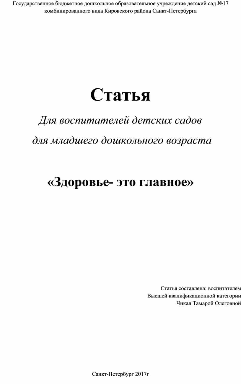 Государственное бюджетное дошкольное образовательное учреждение детский сад №17 комбинированного вида Кировского района Санкт-Петербурга