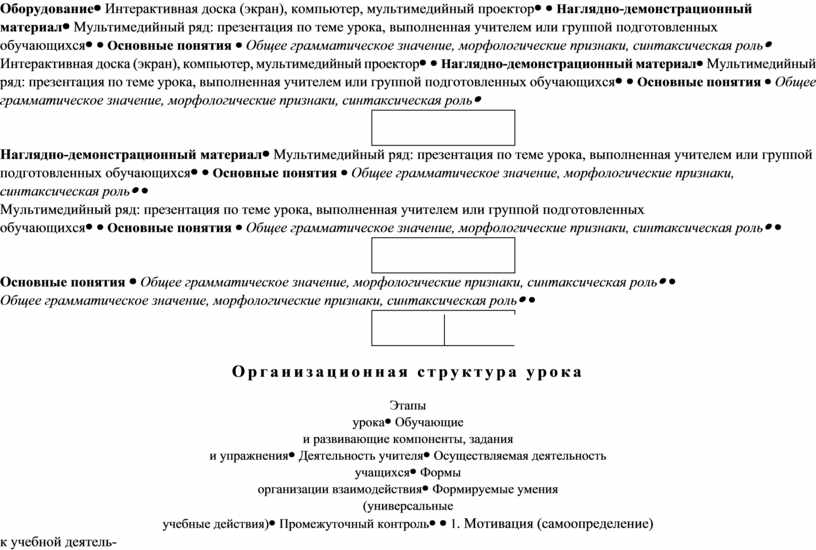 Организационная структура урока