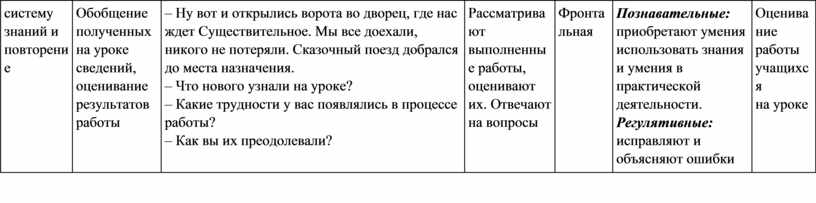 – Ну вот и открылись ворота во дворец, где нас ждет Существительное. Мы все доехали, никого не потеряли. Сказочный поезд добрался до места назначения. – Что нового узнали на уроке? – Какие трудности у вас