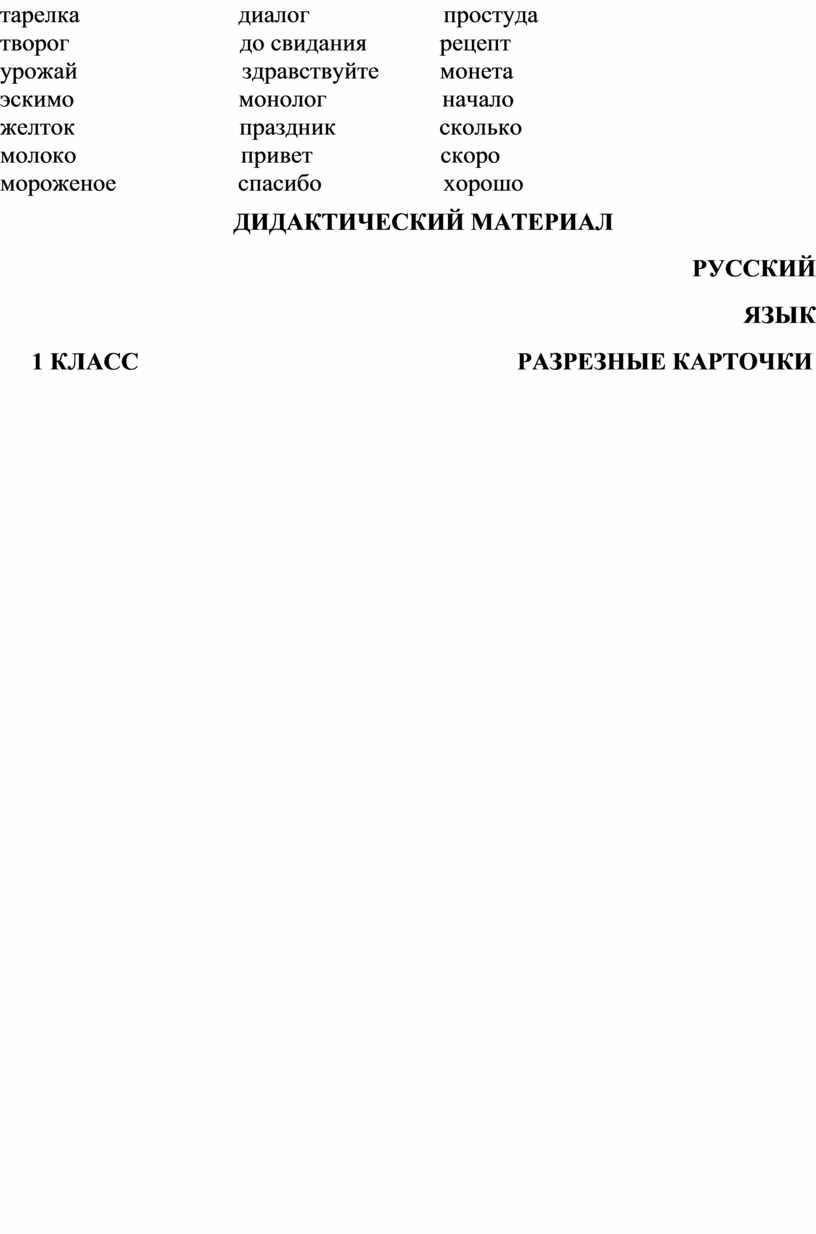 1 КЛАСС РАЗРЕЗНЫЕ КАРТОЧКИ