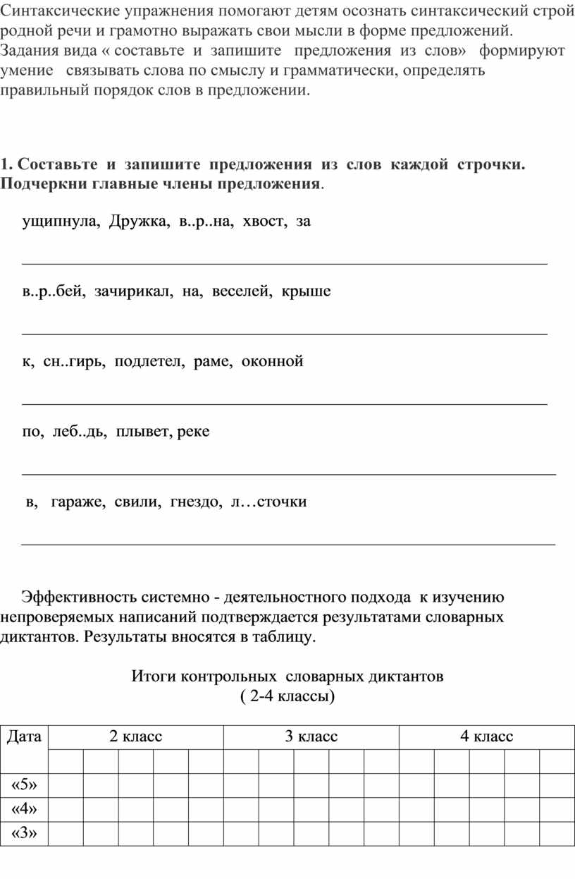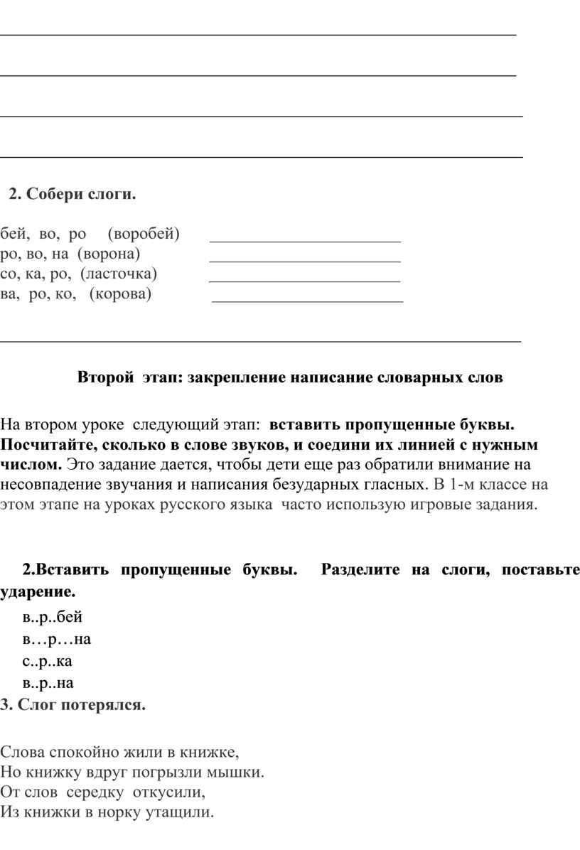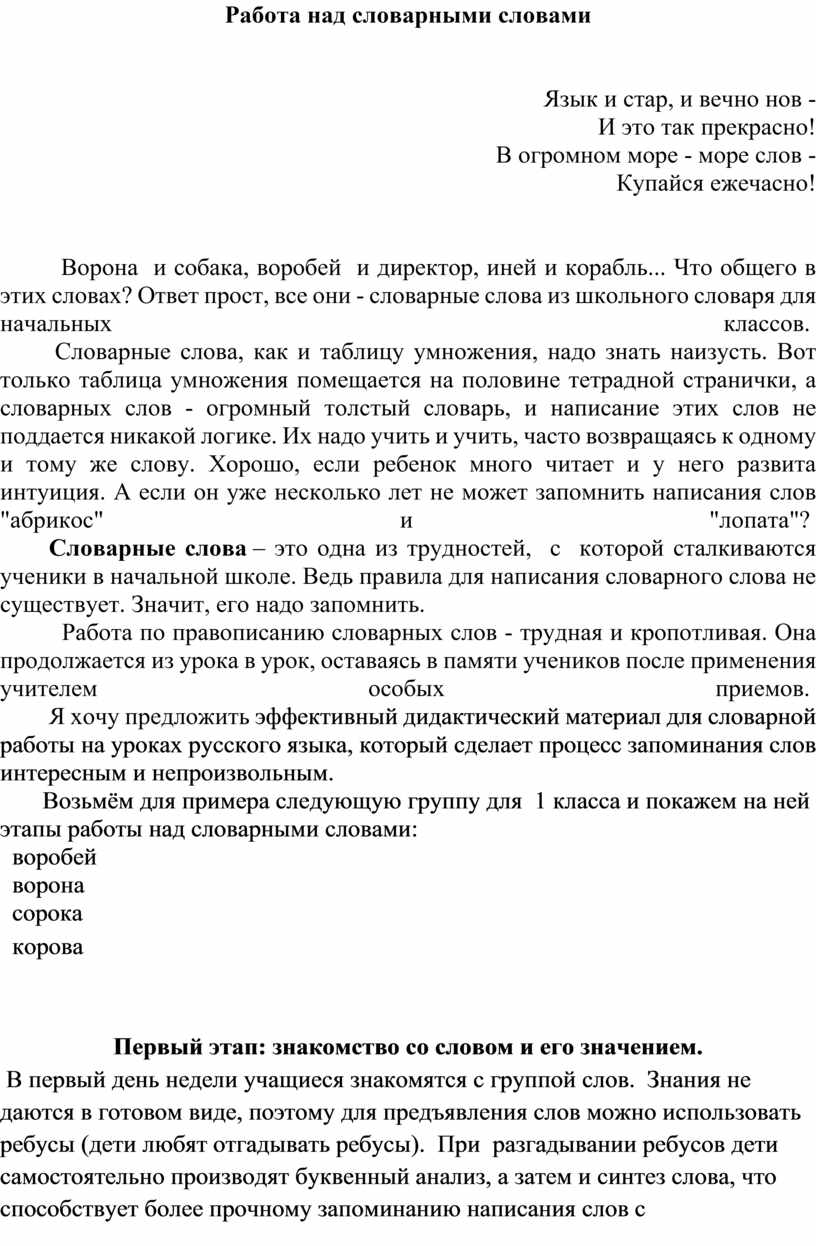 правописанию словарных слов - трудная и кропотливая. Она продолжается из урока