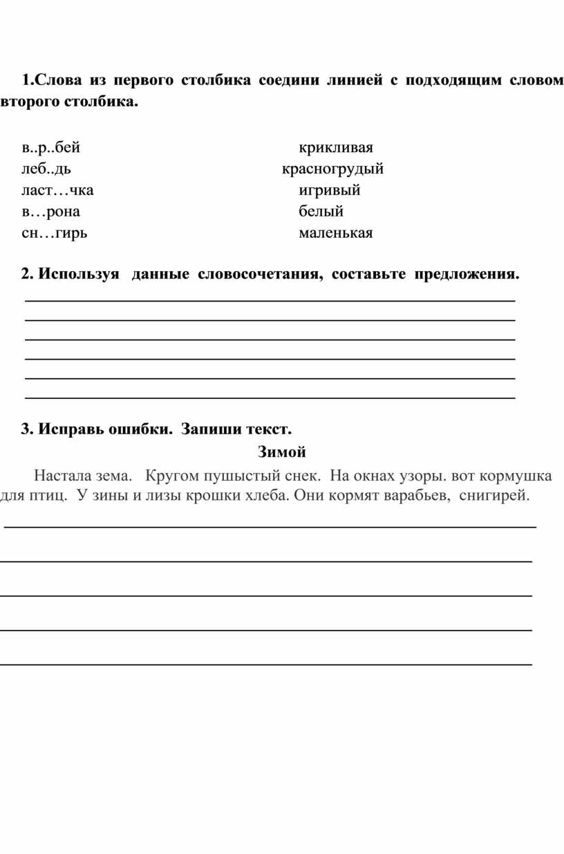 1.Слова из первого столбика соедини линией с подходящим словом второго столбика.