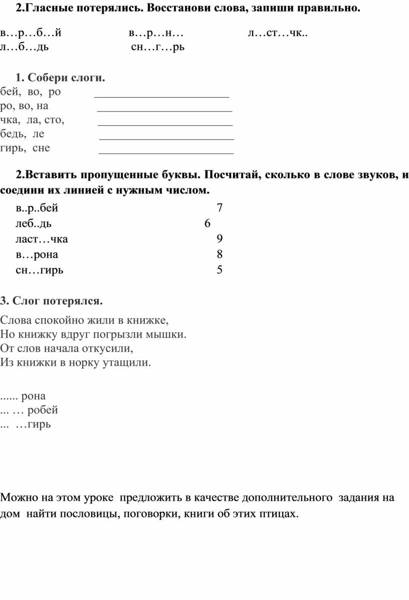 2.Гласные потерялись. Восстанови слова, запиши правильно.