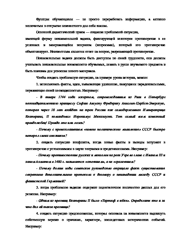 Чтобы создать проблемную ситуацию, на примере урока истории, можно: