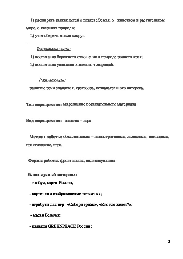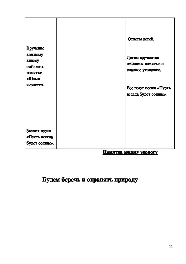 Методическая разработка "Будем беречь и охранять природу"Методическая разработка