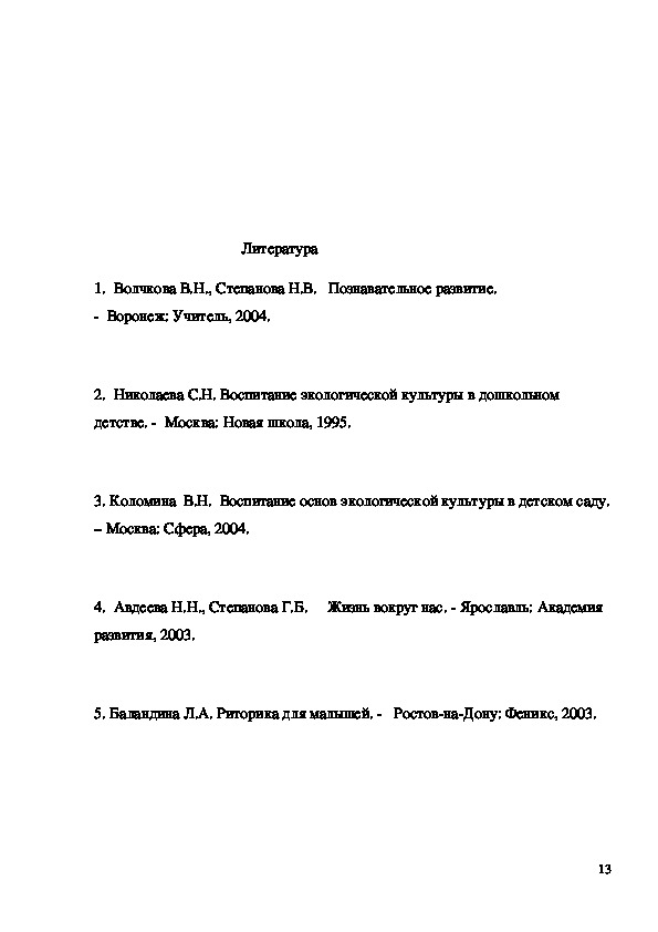 2. Николаева С.Н. Воспитание экологической культуры в дошкольном
