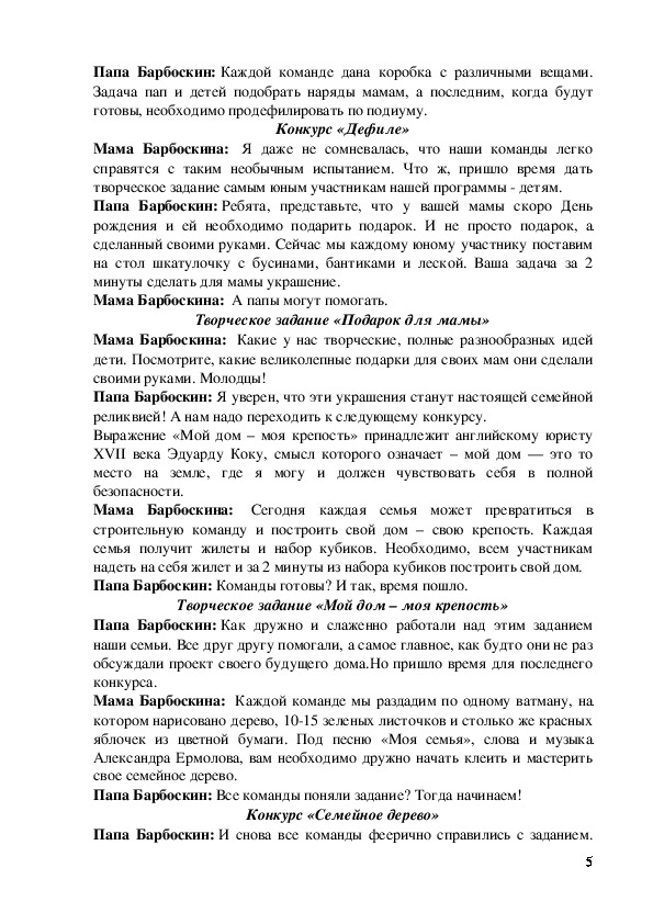 Сценарий конкурсной игровой программы «В кругу семьи»