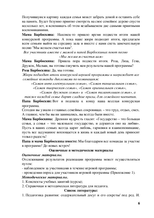 Сценарий конкурсной игровой программы «В кругу семьи»…………….6 –