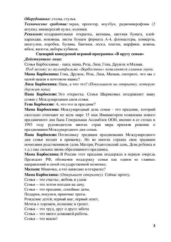 Методическая разработка Игровая конкурсная программа "В кругу семьи", посвященная Международному дню семьи