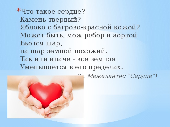 (Э. Межелайтис “Сердце”)