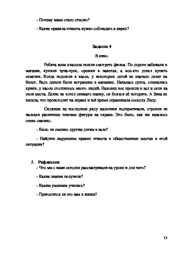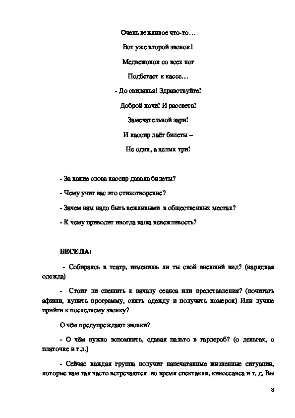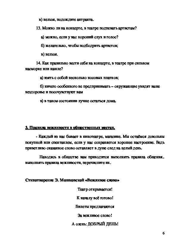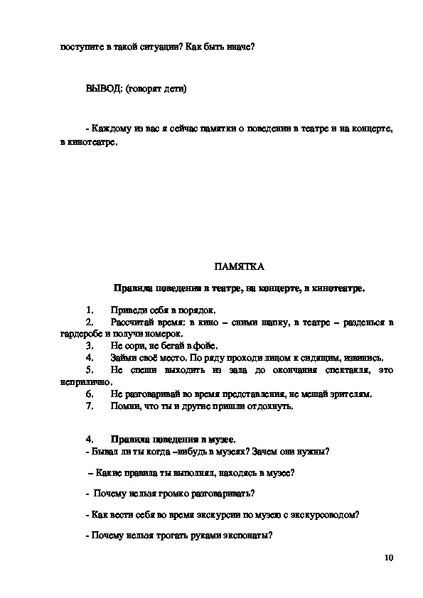 театре, на концерте, в музее), умение вести себя правильно в различных
