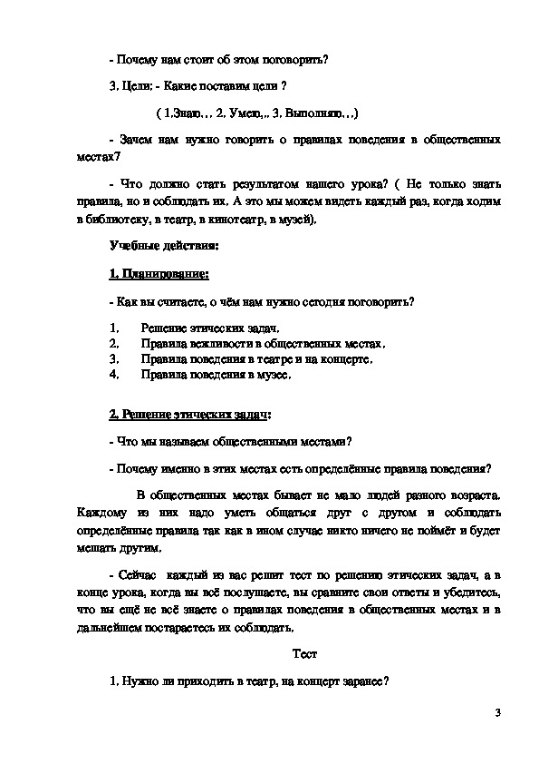 Методическая разработка "Культура поведения в общественных местах" 3 класс.Данный урок соответствует требованиям по ФГОС.