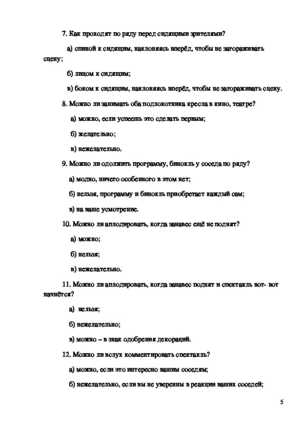 5. Кто покупает программу в театре, на концерте?