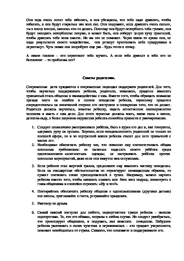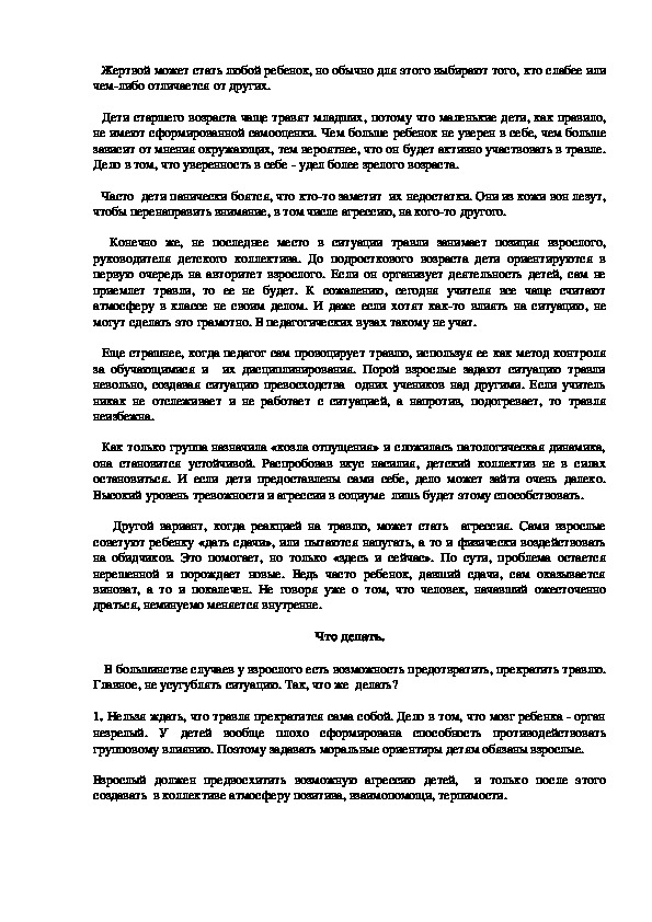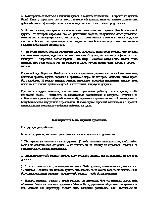 создавать в коллективе атмосферу позитива, взаимопомощи, терпимости.2. Категорично относиться к наличию травли в детском коллективе. Её просто не должно