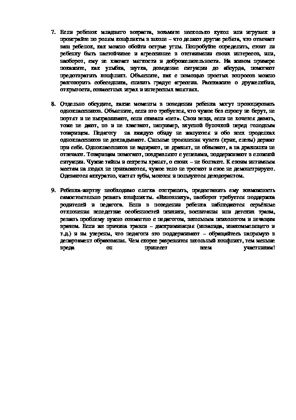 самостоятельно решать конфликты. «Виновнику», наоборот требуется поддержка