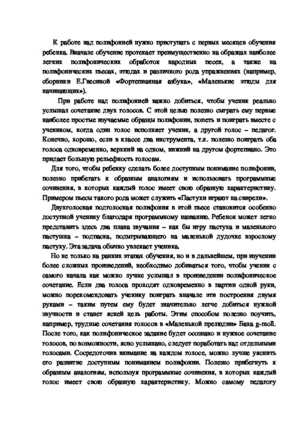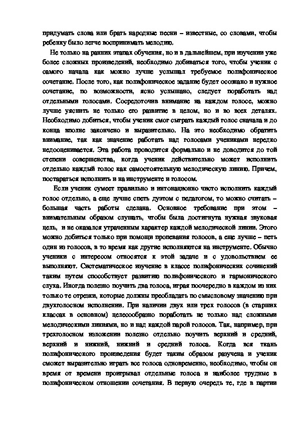 его развитие доступным пониманием полифонии. Полезно прибегнуть к