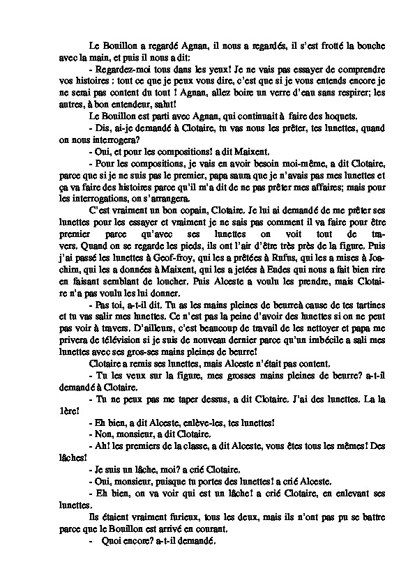 de la classe. Quant a nous, nous étions bien contents de penser que Clotaire serait