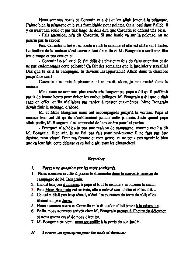 3. Puis Mme Bongrain est arrivée, elle a enlevé son tablier et elle a dit…