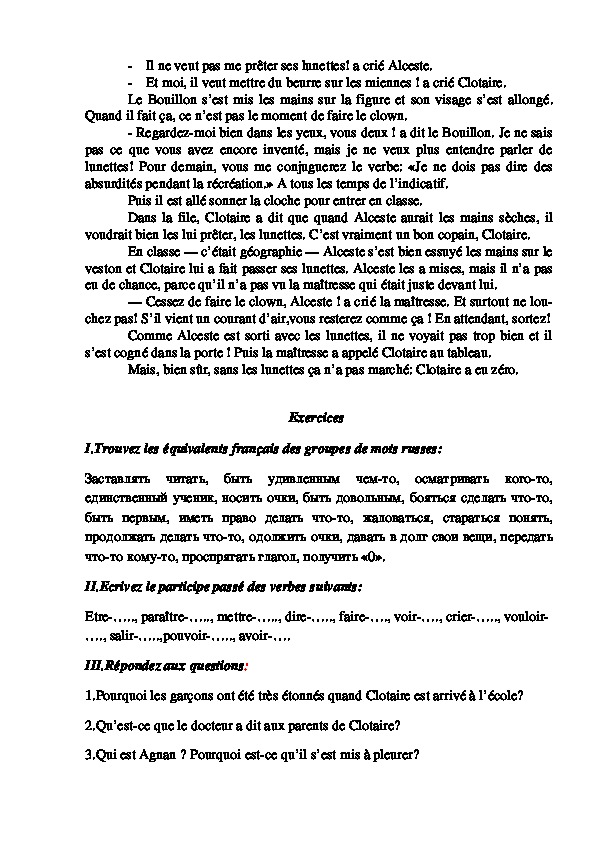 1 Адаптация текста С.В. ЖелтухинаClotaire a des lunettes