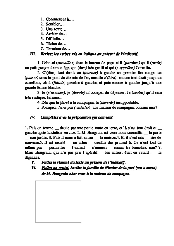III. Ecrivez les verbes mis en italique au présent de l’indicatif.