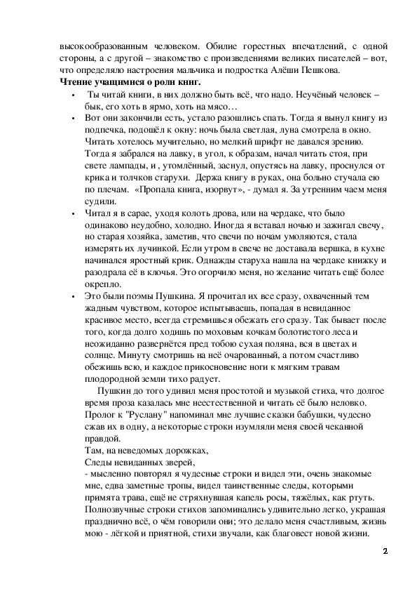 обогатила меня, насытив крепкой силой для трудной жизни». («Детство»).