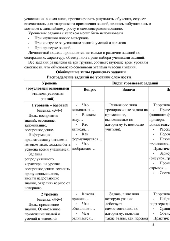 3. применение уровневых заданий наиболее эффективно только вместе с