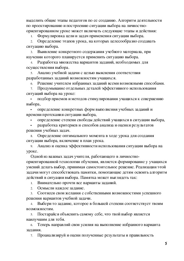 умений делать выбор, принимая самостоятельное решение. Реализации этой