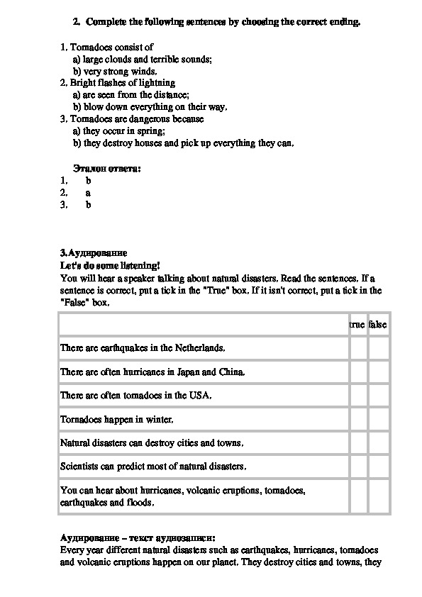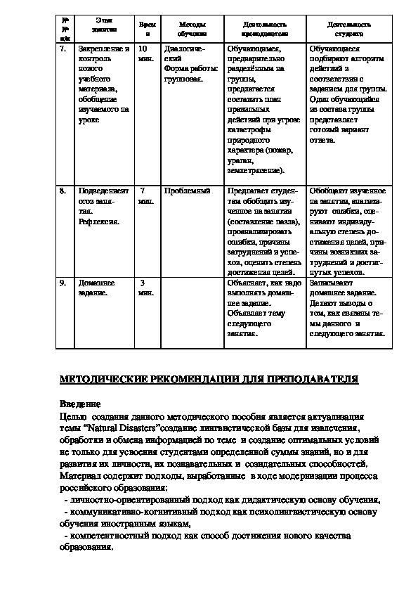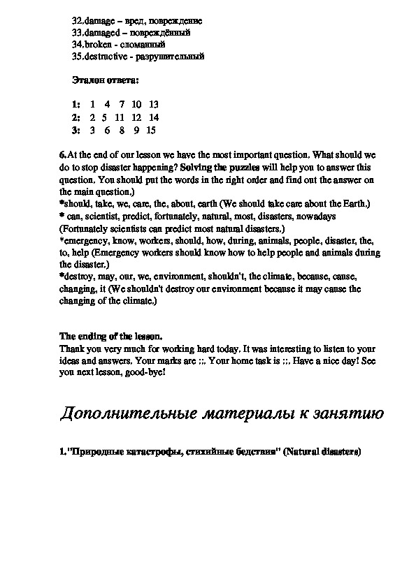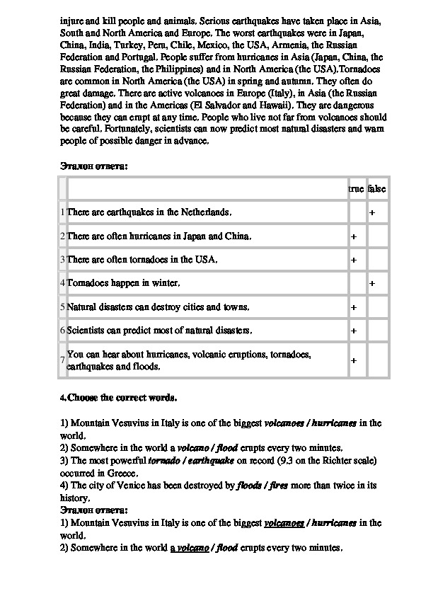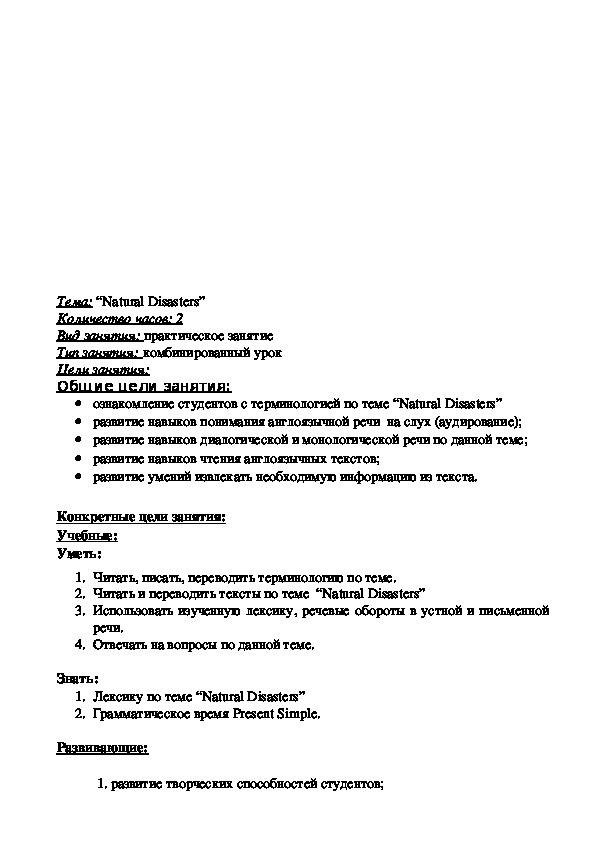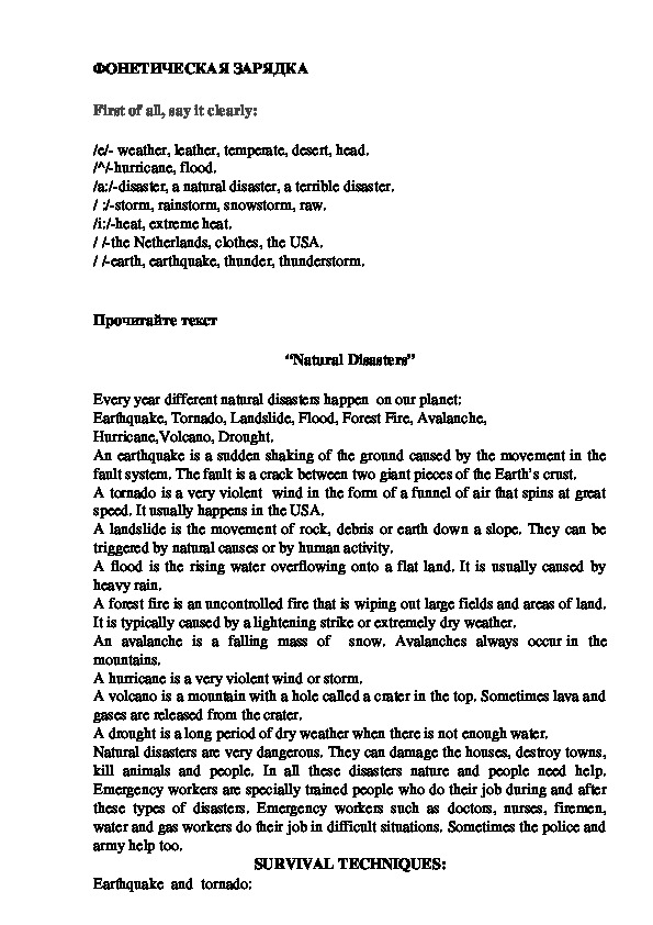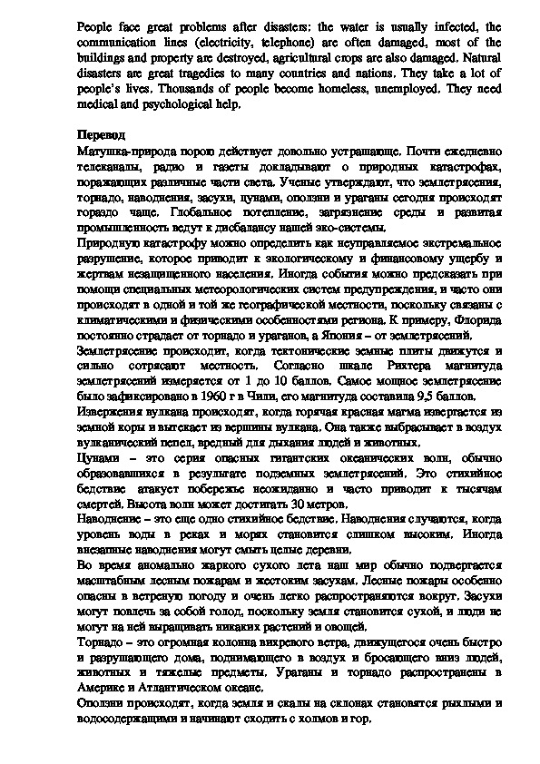 Тема “Natural Disasters”расширяет рамки знаний студентов и связана с будущей
