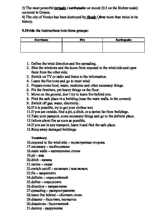 ознакомление студентов с терминологией по теме “Natural Disasters”