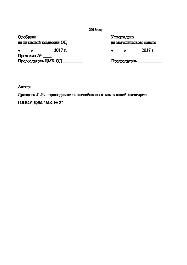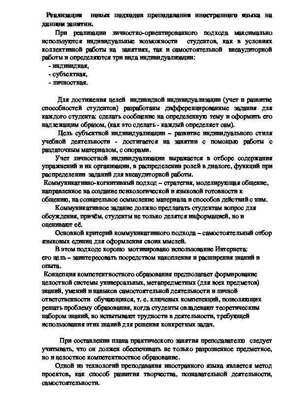 Данная методическая разработка составлена в соответствии с Рабочей программой по дисциплине «Иностранный язык (английский)» и соответствует требованиям Федерального Государственного образовательного стандарта. Она предназначена для преподавателей, работающих со студентами 1 курса, ранее изучавшими английский язык в средней школе.