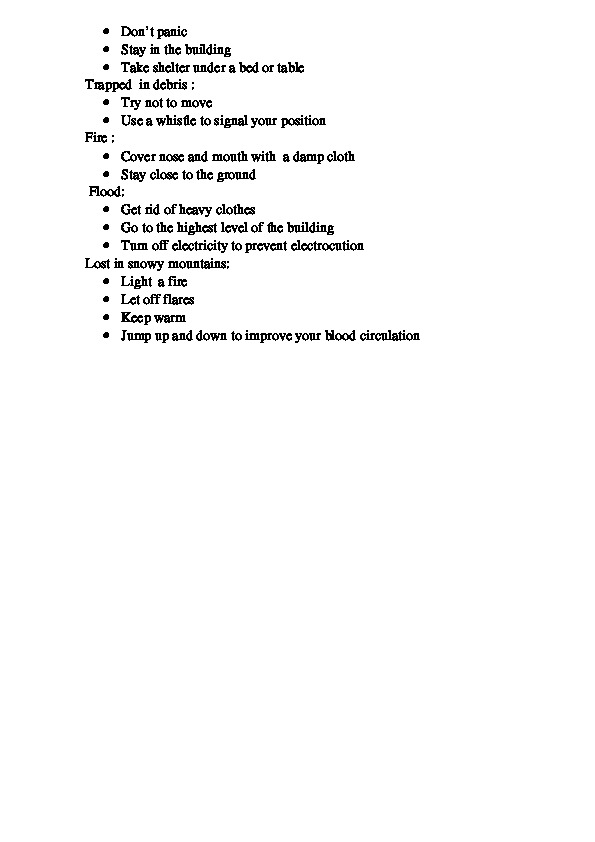 and they fall down the hills or mountains.People face great problems after disasters: the water is usually infected, the