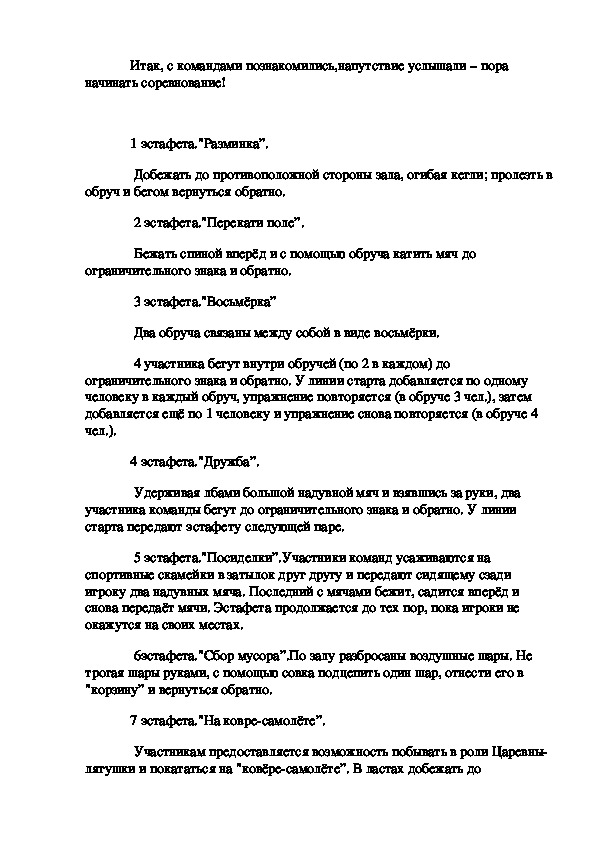 Описание эстафеты: Команды стоят на линии старта, у направляющих