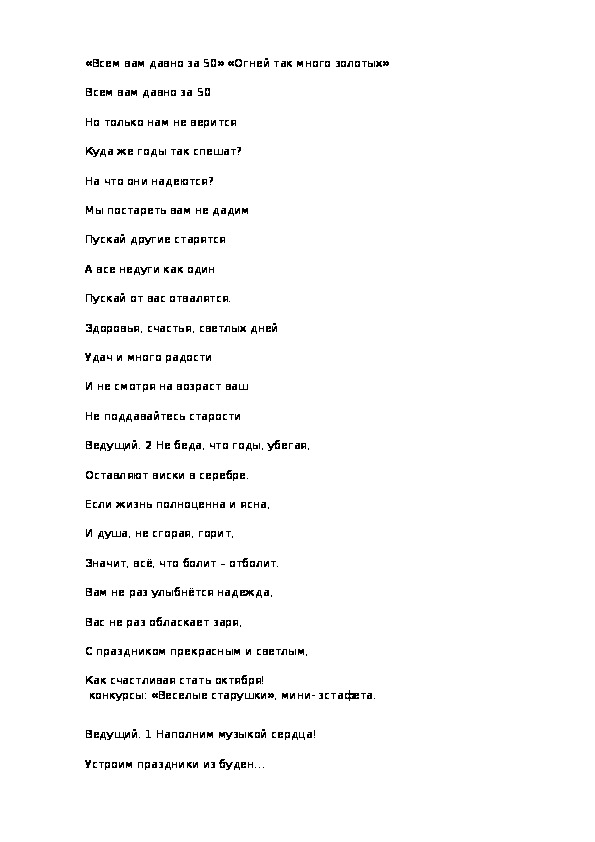 Одной дорогой рядышком идут.«Всем вам давно за 50» «Огней так много золотых»