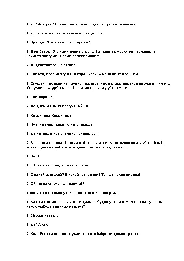 2. А, поняла-поняла! Я тогда всё сначала начну. «У лукоморья дуб зелёный,