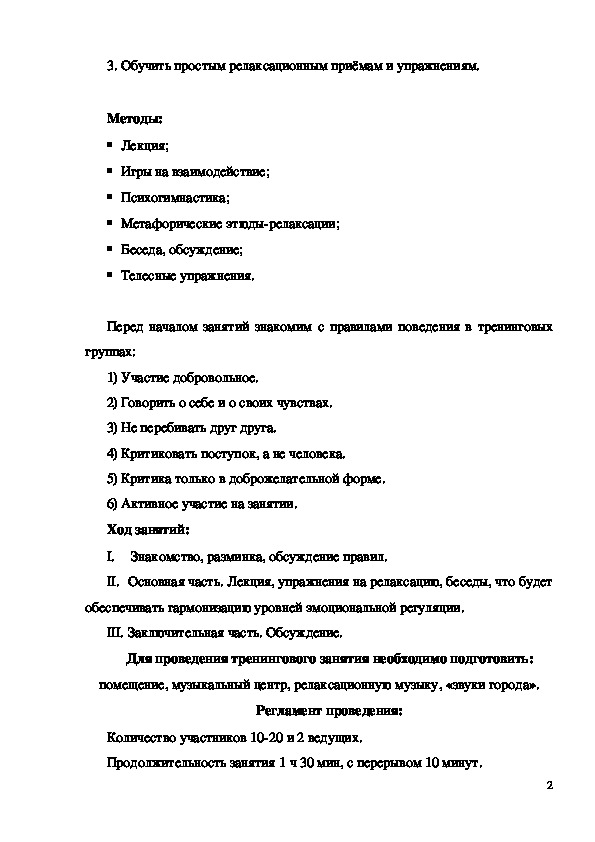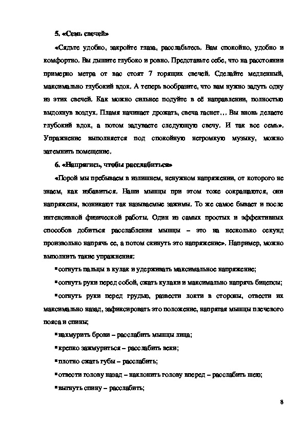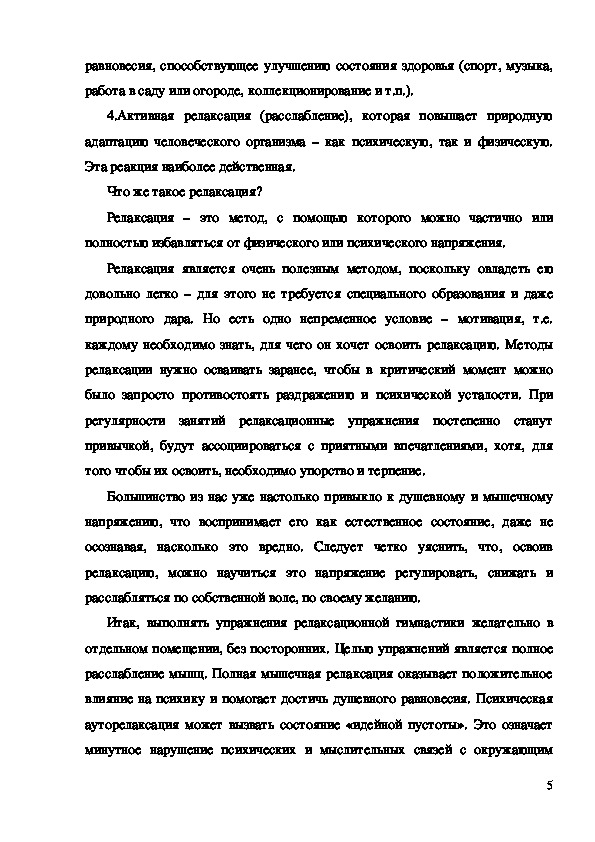 2. Раскрыть роль релаксации в профилактике возникновения стрессового состояния.