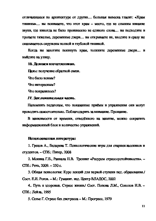 2. Монина Г.Б., Раннала Н.В. Тренинг «Ресурсы стрессоустойчивости». –