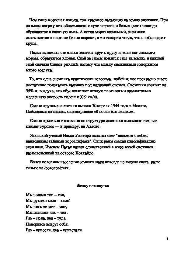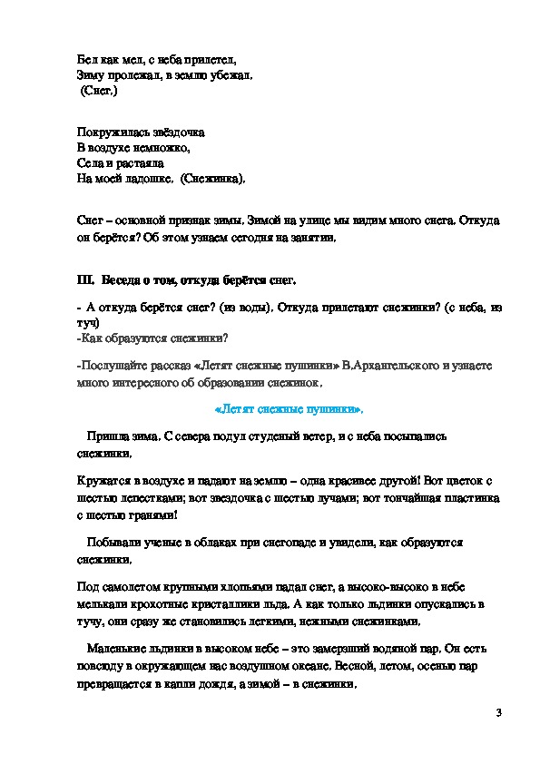 Цель занятия: познакомить обучающихся со свойствами снега, откуда прилетают снежинки, развивать творческие способности учащихся.