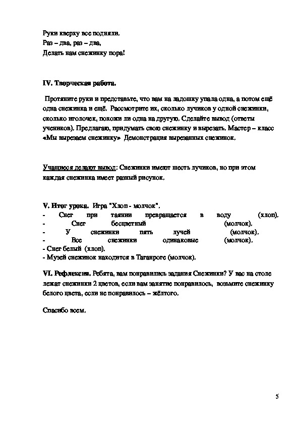 учеников). Предлагаю, придумать свою снежинку и вырезать. Мастер – класс