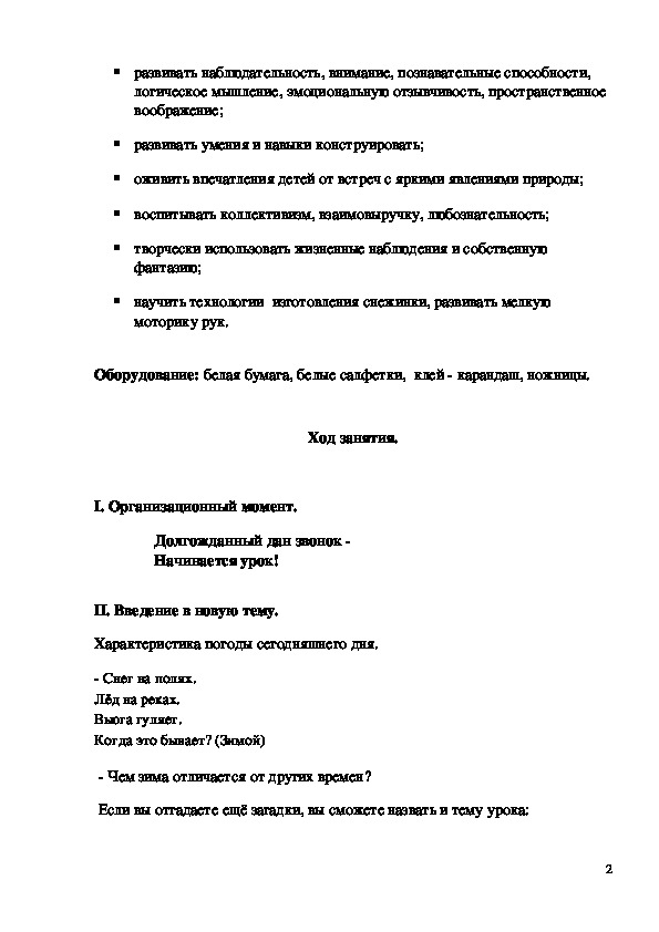 • научить технологии изготовления снежинки, развивать мелкую моторику рук.