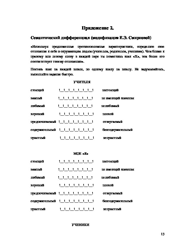 Семантический дифференциал (модификация Е.Э. Смирновой)