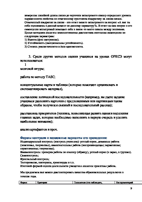 Методическая разработка по теме « Способы оценивания качества образовательных результатов при изучении курса ОРКСЭ»
