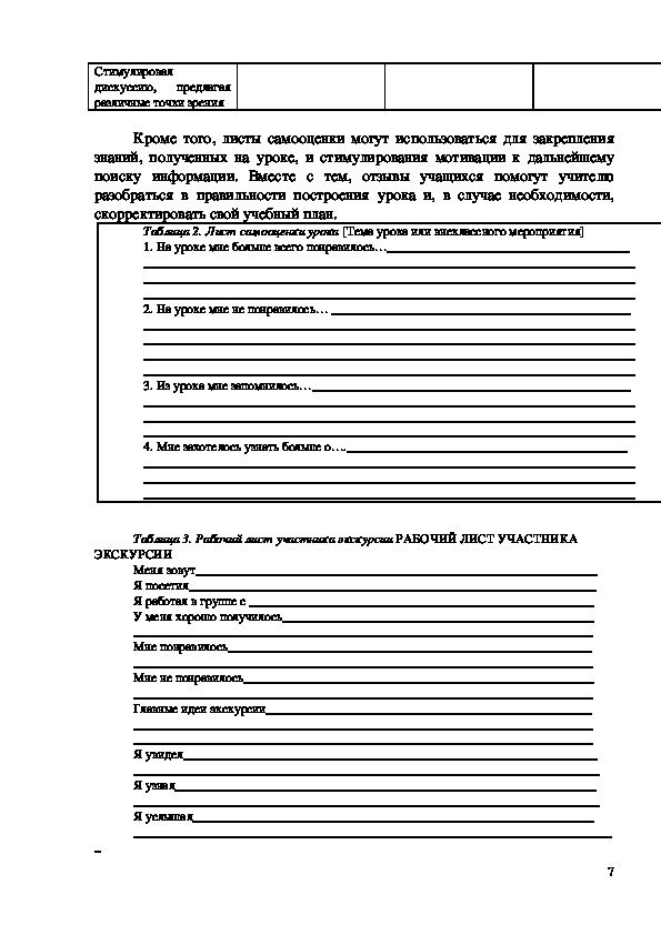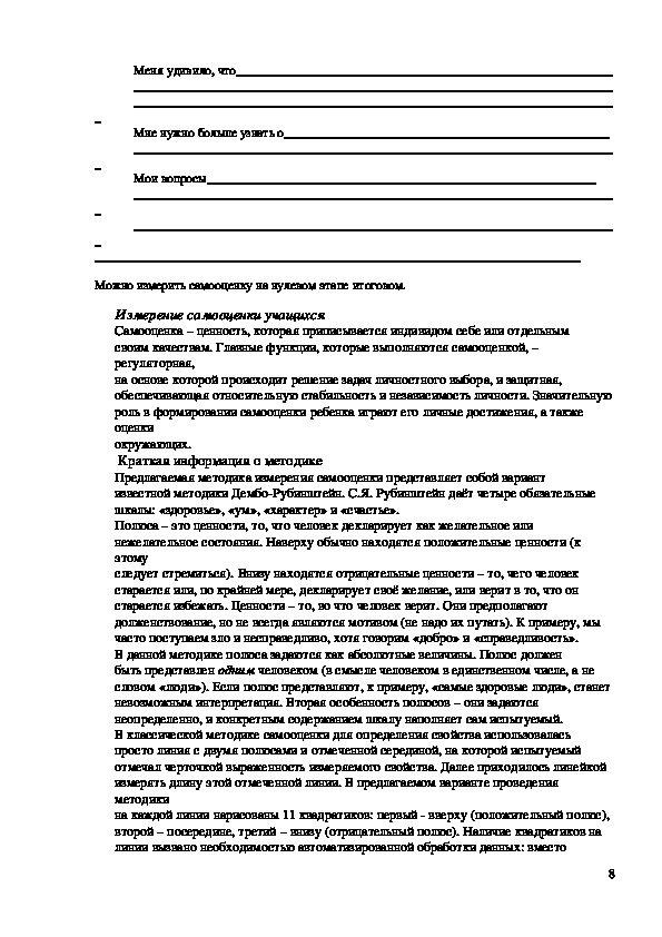 успехами некоторое время назад, планировать дальнейшую учебную деятельность;