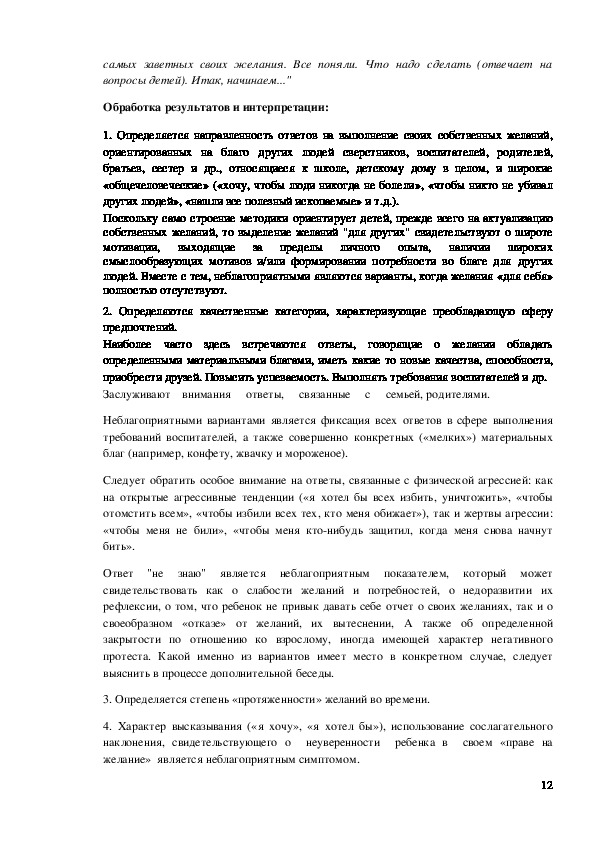 рефлексии, о том, что ребенок не привык давать себе отчет о своих желаниях, так и о