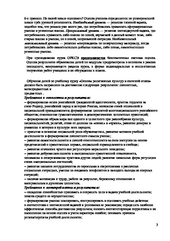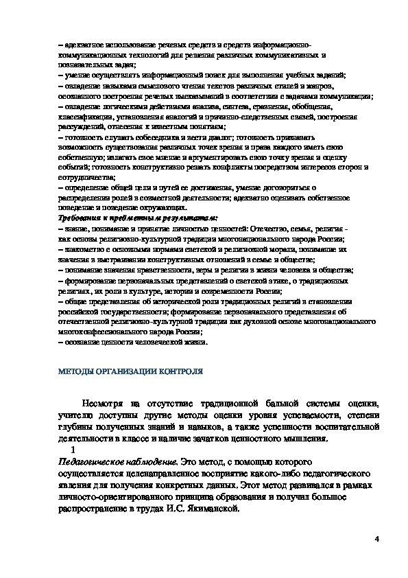 специализированного курса «Основы религиозной культуры и светской этики».