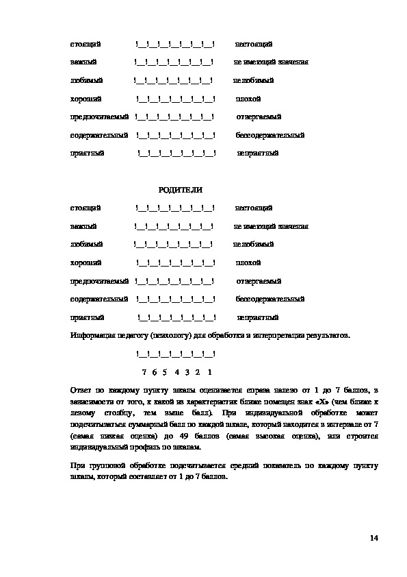 Ответ по каждому пункту шкалы оценивается справа налево от 1 до 7 баллов, в