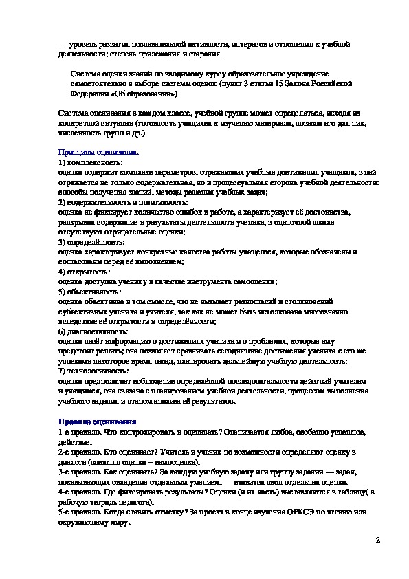 самостоятельно в выборе системы оценок (пункт 3 статьи 15 Закона Российской