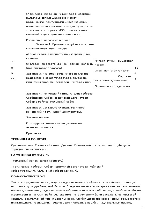 Тема: «Архитектура Западного Средневековья. Романский и Готический стили»