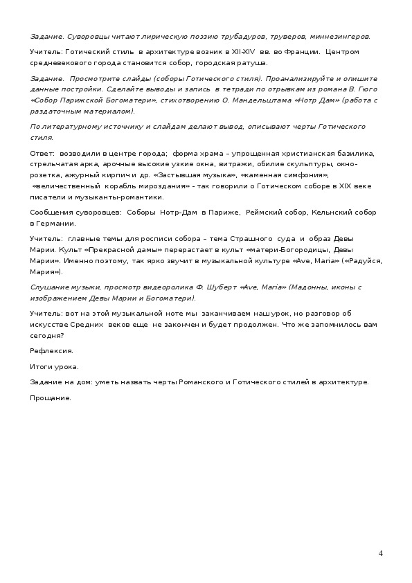Задание на дом: уметь назвать черты Романского и Готического стилей в архитектуре.