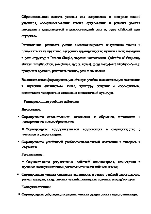 студентами первого курса, изучающими английский язык. Урок входит в