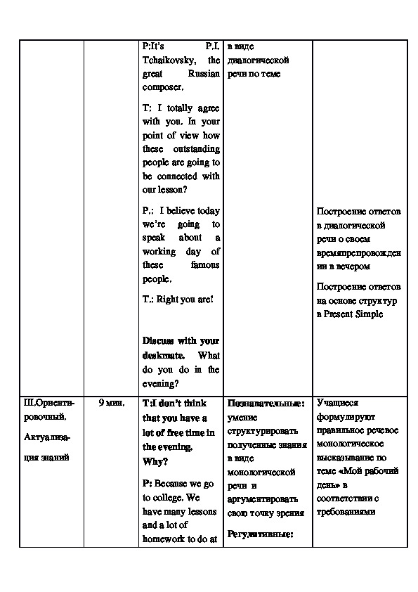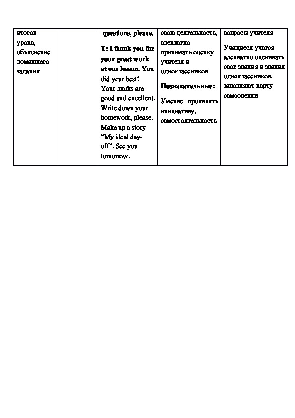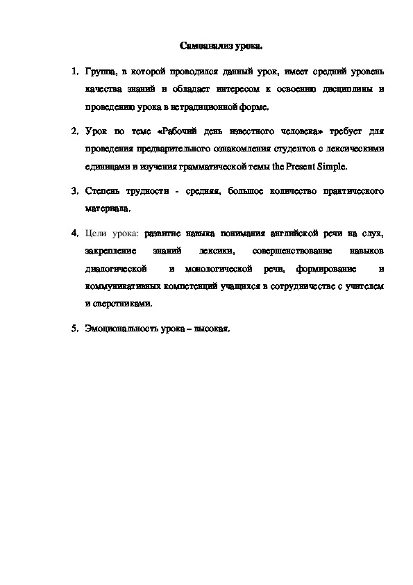 tomorrow.Самоанализ урока.